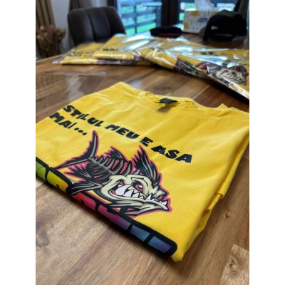 Instrucțiuni de întreținere: Spălați la 30 grade, împreună cu culori similare, evitați călcarea peste imprimeu și întoarceți tricoul pe dos pentru spălare și călcare, pentru a menține aspectul și durabilitatea imprimeului.